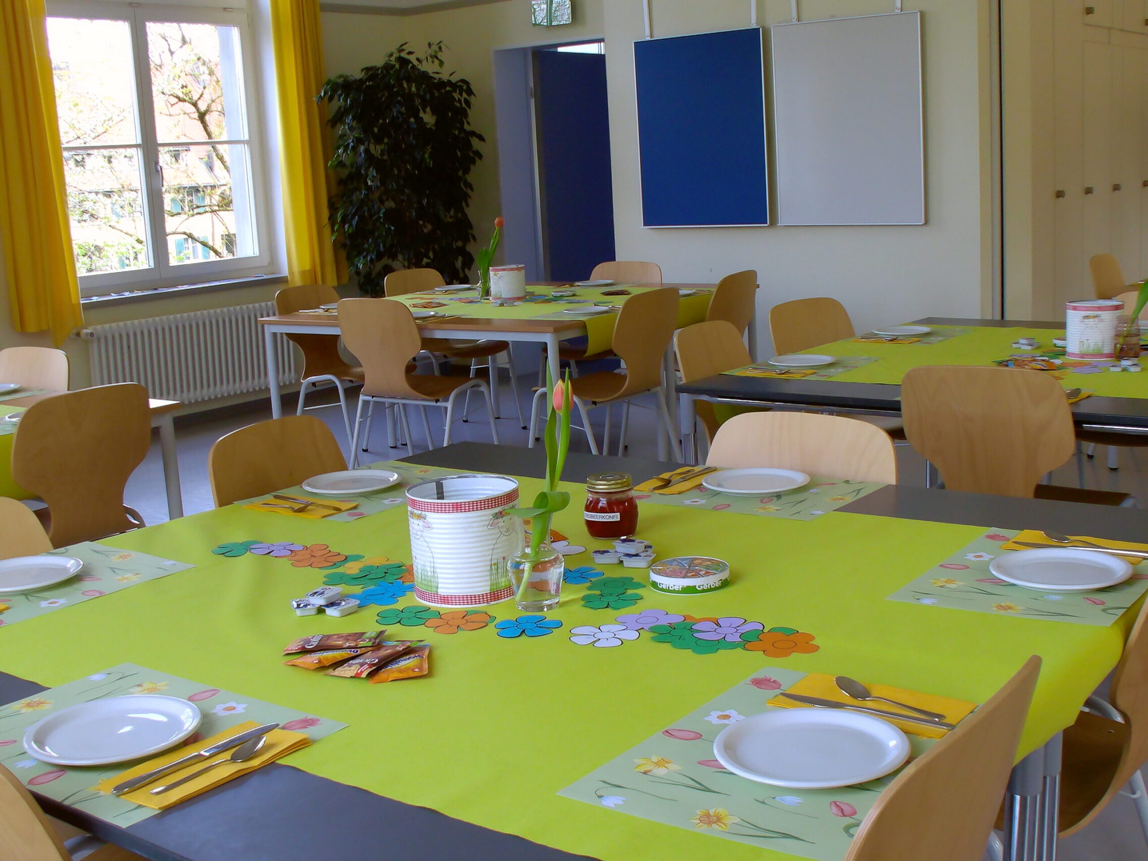 In drei liebevoll dekorierten Esssäle konnten die Gäste in aller Ruhe brunchen und die selbstgemachten Brote und Marmeladen geniessen. Für den kleinen Kaufrausch gab es am Eingang sogar einen bunten Verkaufsstand, wo unter anderem Selbstgemachtes aus der Verlängerung der Oberstufenschülerinnen und Schüler angeboten wurde.